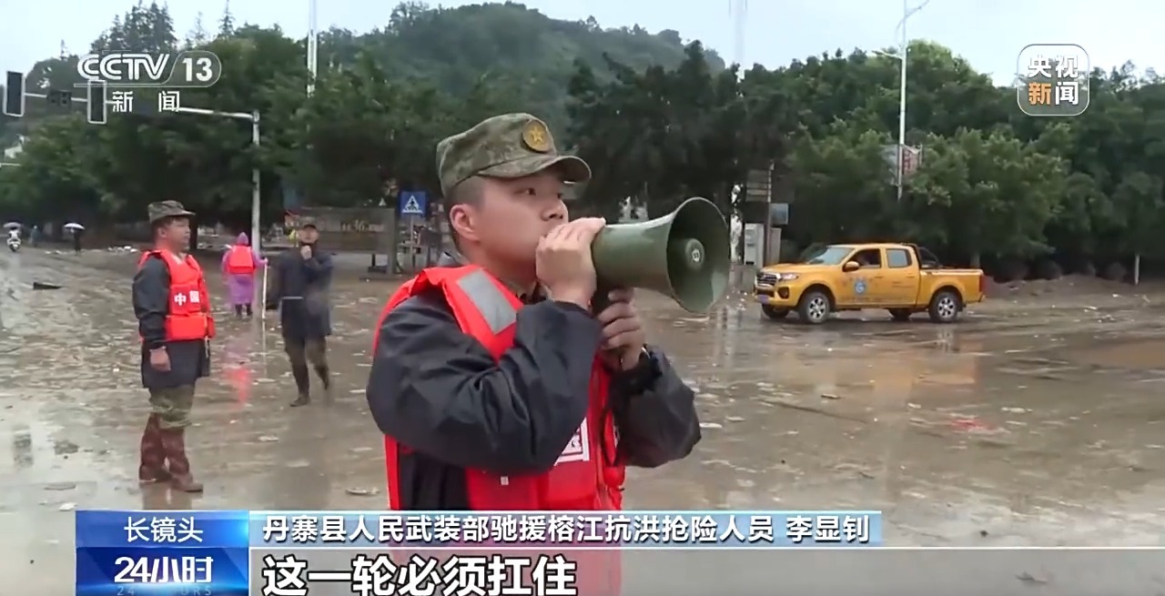 *丹寨縣人民武裝部馳援榕江抗洪搶險人員 李顯釗:*半個小時前才問了一下,家裏報了平安,讓我們在外面的人一切要平安,我們同時在努力,這一輪必須扛住,也必須堅持住。