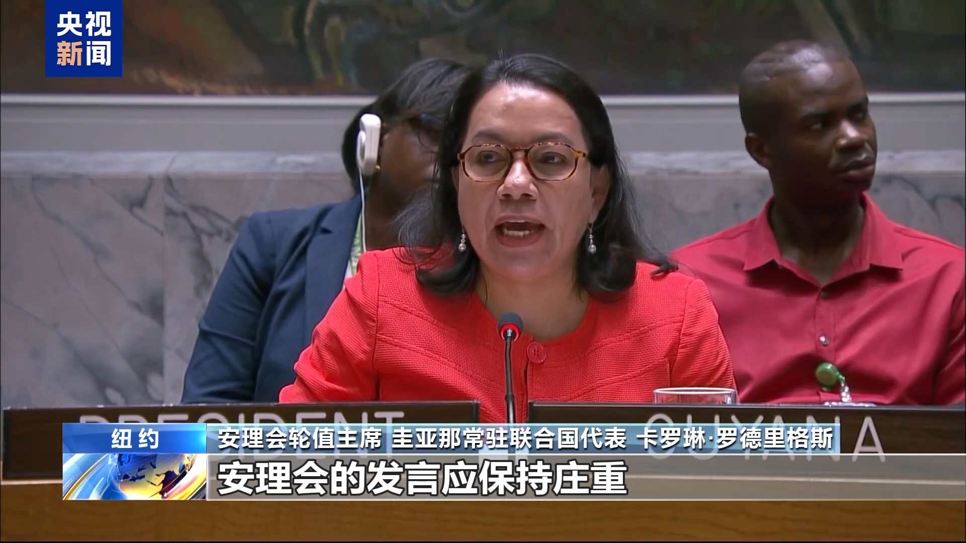 *安理會輪值主席、圭亞那常駐聯合國代表 卡羅琳·羅德里格斯:*我只是想提醒大家,安理會的發言應保持莊重,避免人身攻擊和插話。