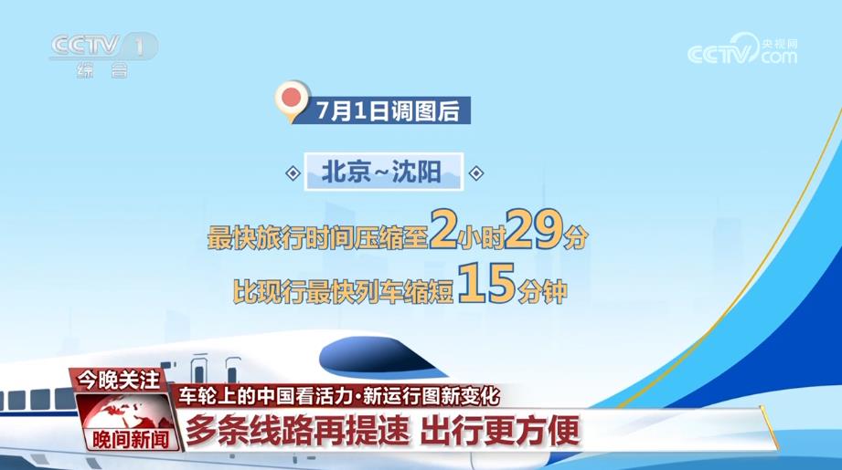 北京至瀋陽最快旅行時間壓縮至2小時29分,比現行最快列車縮短15分鐘。