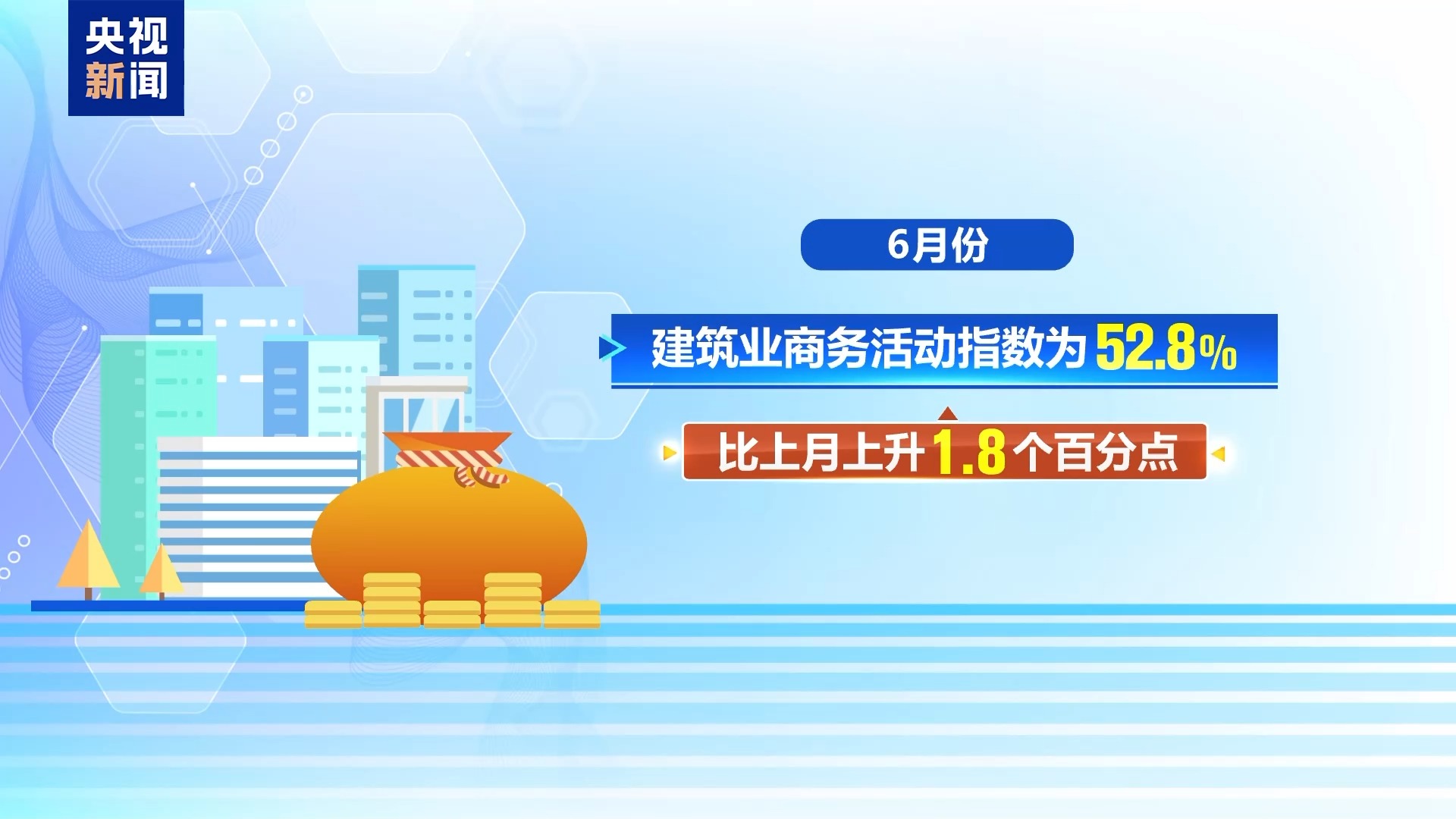 *6月份建築業商務活動指數為52.8%,比上月上升1.8個百分點,*景氣水平有所回升。其中,土木工程建築業商務活動指數為56.7%,連續三個月位於55%以上較高景氣區間,表明近期基礎設施項目建設保持較快施工進度。