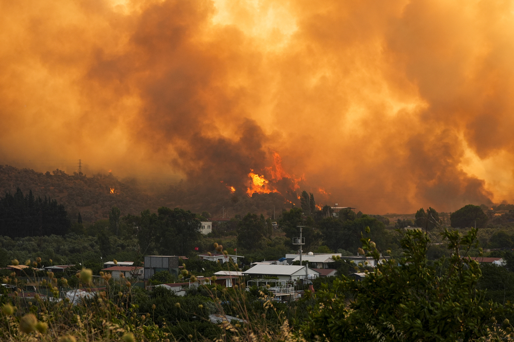 當地時間2025年6月30日,土耳其伊茲密爾省塞費裏希薩爾區,當地的山火引發大量濃煙和火焰。