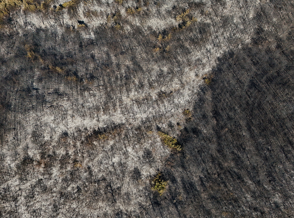 當地時間2025年6月30日,土耳其伊茲密爾,門德雷斯區,航拍受損森林區域。