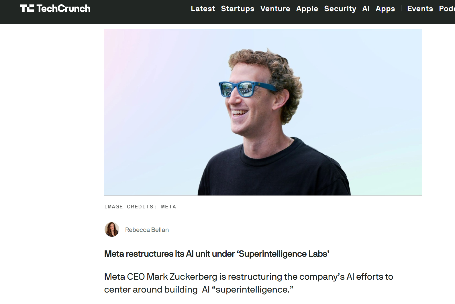 【環球網科技綜合報道】7月1日消息,據外媒報道,Meta CEO馬克・扎克伯格宣佈對公司人工智能部門進行重組,成立Meta Superintelligence Labs(簡稱MSL),該實驗室將專注於開發能夠比肩甚至超越人類能力的“超級智能”人工智能系統。