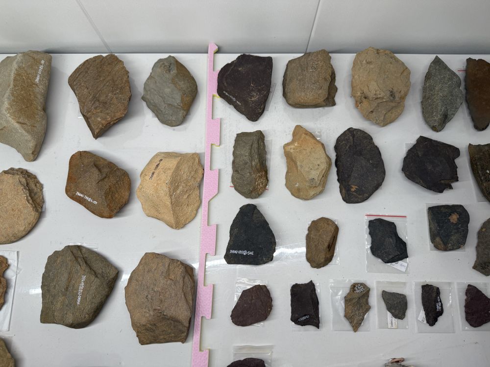 圖為南或河遺址出土的部分石製品。新華社記者徐壯 攝