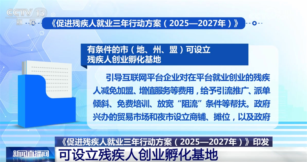 *央視網消息:*日前,國務院辦公廳印發《促進殘疾人就業三年行動方案(2025—2027年)》,進一步加強殘疾人就業幫扶。