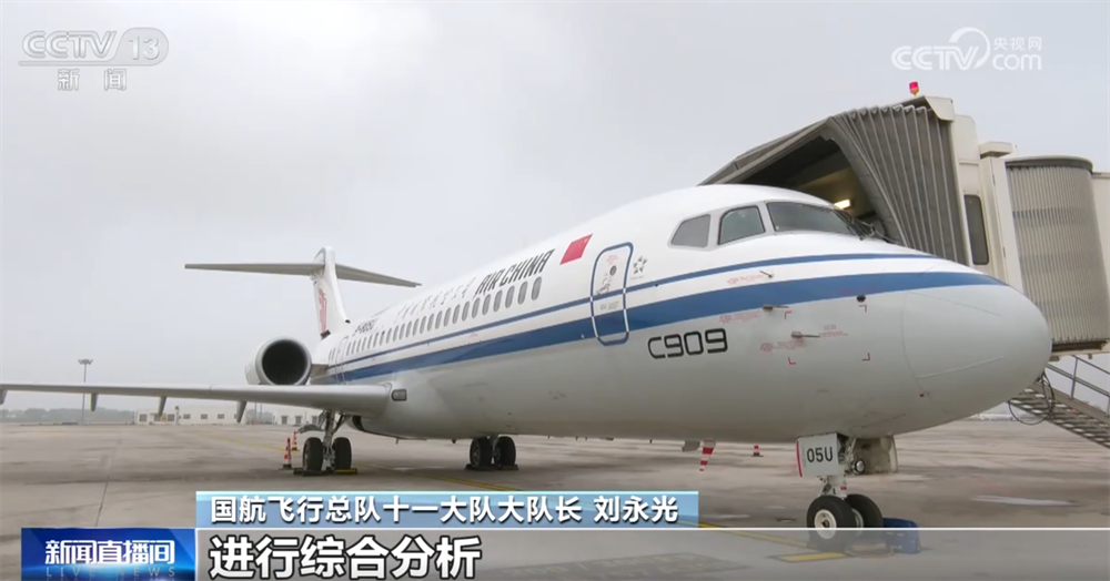 國航飛行總隊十一大隊大隊長劉永光稱:“C909首次身披國旗飛出國門,作為機長我感到無比榮幸。我們對該航線進行了系統性運行風險評估,結合C909的性能特點,從航路規劃、空域結構、機場運行標準及航空氣象特徵等核心要素開展綜合分析,制定了詳細的飛行程序。”
