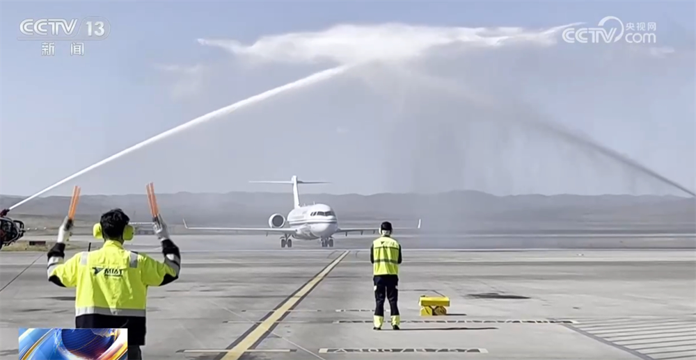 經過了一個多小時的飛行,C909客機平穩降落烏蘭巴托國際機場,機場以民航界最高禮遇“水門儀式”相迎,為國航C909“接風洗塵”。