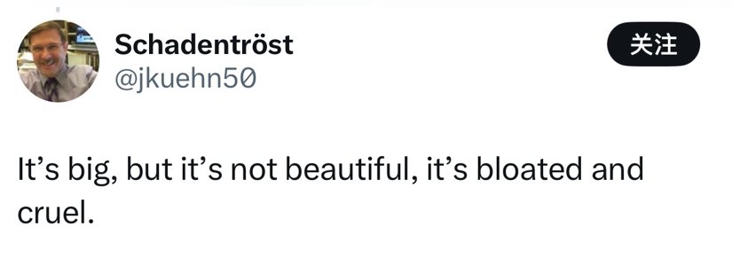 有網友質疑並吐槽稱,“你們會看這種宣傳嗎?”還有網友對視頻推廣的法案表示,“這項法案很大,但並不美,它臃腫且殘忍。”↓