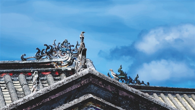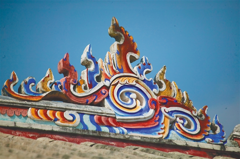 海南民居屋脊上的灰塑雕花。資料圖