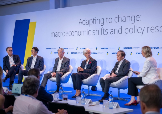 【環球時報報道 記者 肖震冬 環球時報特約記者 任重】當地時間6月30日至7月2日,2025年歐洲央行中央銀行論壇在葡萄牙辛特拉舉行。今年論壇的主題是“適應變化:宏觀經濟轉型與政策應對”。今年以來,世界經濟最大的變化就是美國挑起關税衝突並攪動全球。除歐盟各國央行行長外,美聯儲主席鮑威爾、英國央行行長貝利、日本央行行長植田和男與韓國央行行長李昌鏞也參加了論壇,他們對全球貿易緊張局勢、中東衝突如何影響通脹與增長前景發表看法。