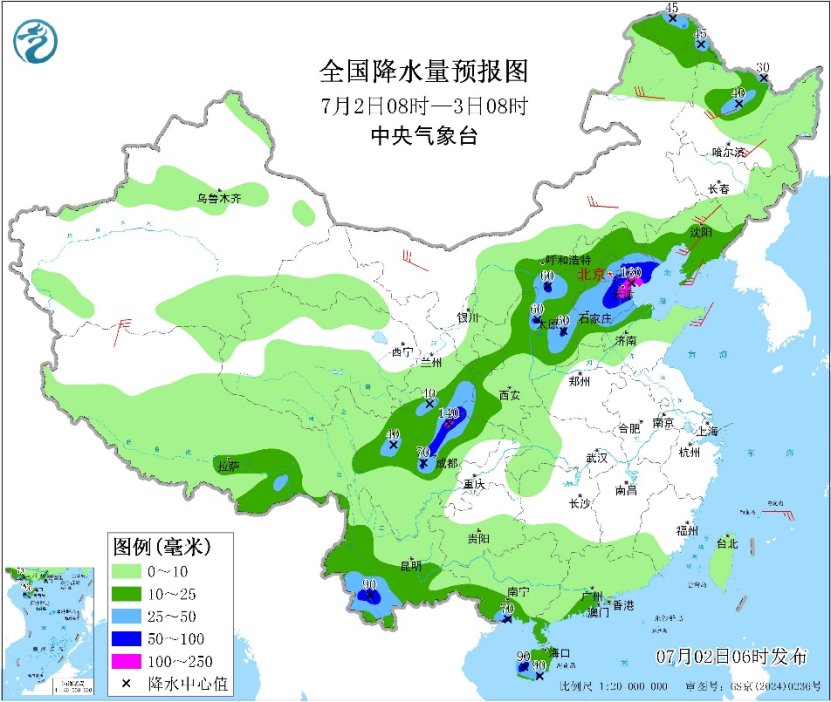 未來一段時間,我國主要降雨帶將維持在副熱帶高壓邊緣,即四川盆地西部至華北、東北一帶。其中今天,京津冀地區將有較強降雨並需警惕強對流天氣;2日至6日,四川盆地西部、甘肅南部、陝西西南部、雲南西部等地有持續性降雨,四川盆地西部累計雨量或可超400毫米,要特別關注局地強降雨或持續降雨可能引發的次生災害。而在副熱帶高壓控制下的地區則以高温天氣為主,預計黃淮及以南地區本週都將處於炎熱的狀態。