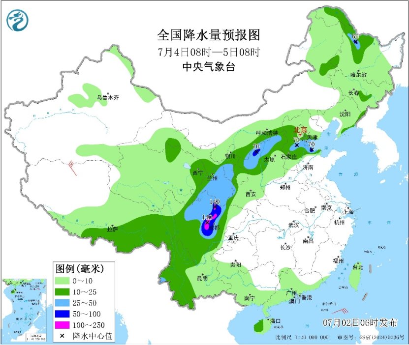 中央氣象台:京津冀今日雨較強四川甘肅警惕持續性降雨 中東部高温區逐步擴展
