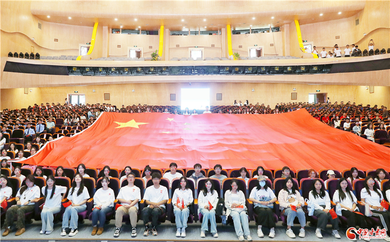 伴隨着震撼的誓言,一面巨大的五星紅旗從會場後方徐徐展開,幾乎鋪滿整個會場,“紮根西部、報效祖國”的豪情與壯志在現場湧動。