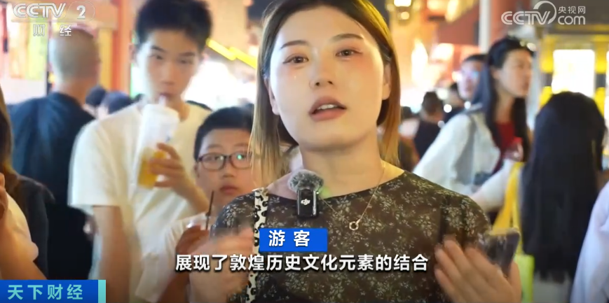 遊客:踏上這條街,商鋪設計給我帶來非常大的視覺衝擊,我感覺這條街展現了敦煌歷史文化元素的結合。