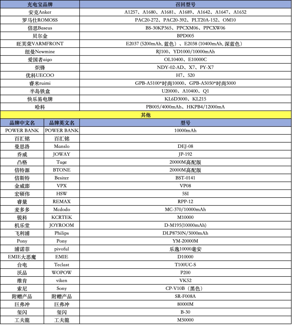 哪些充電寶屬於被召回的型號?乘客該如何查詢?