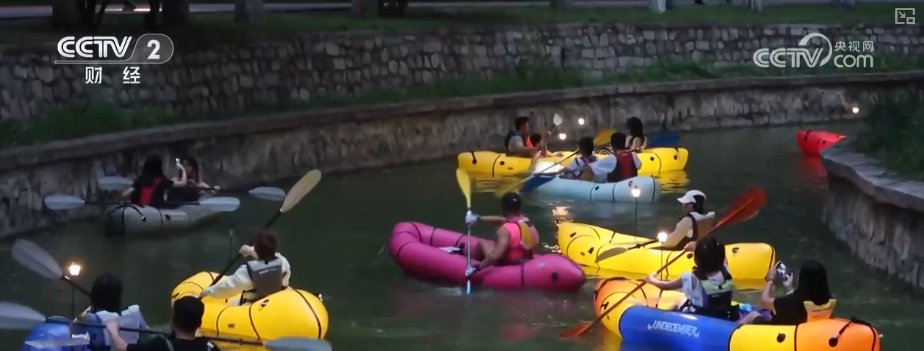 當霓虹初上,五彩斑斕的揹包船成為河面上的一抹亮麗風景。在北京市東城區的一家户外俱樂部,遊客們可以在兩小時的揹包船遊覽中解鎖新體驗。