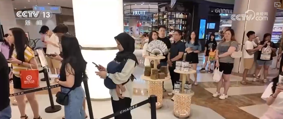 在印度尼西亞雅加達的一家商場,這家源自中國的奶茶品牌從2025年3月開始進入印尼市場,據説開業第一天就賣出了4000多杯,平均一分鐘售出6杯。現在已經開業快4個月了,火爆依然不減。