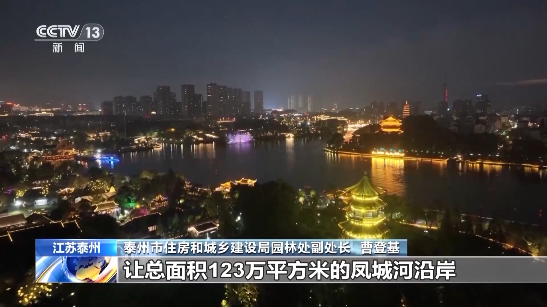 *泰州市住房和城鄉建設局園林處副處長 曹登基:*我們貫通了所有的橋下斷點,建成了總長60公里的慢行景觀步道,然後圍繞河岸佈局了文化場館、商業街區、體育公園、健身器材、球類場地,讓總面積123萬平方米的鳳城河沿岸成為大家共享的“休閒濱水空間”。