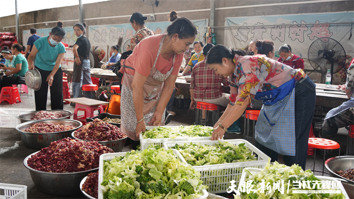 記者走進這個由忠誠鎮村民自發組織,搭建起來的臨時食堂,正值飯點,摘菜區、洗菜區、切菜區、炒菜區,以及打包區,300多名自願幫廚的羣眾,流水化作業,忙碌而有序。