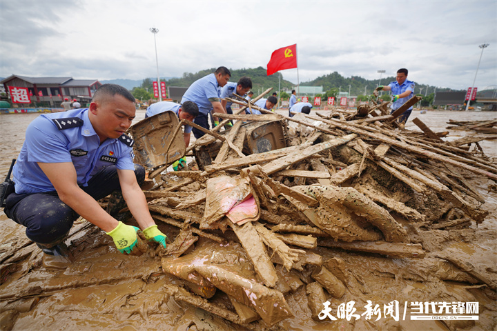 “從6月25日開始,我們就開始一邊救援,一邊清淤。”武警黔東南支隊政治工作處副主任楊仁棟介紹,在清理貴州村超球場時,淤泥厚度有五六十公分,裏面雜物較多,給清理工作帶來難度。尤其是在清淤泥過程中沒有設備,全靠戰士雙手處理。