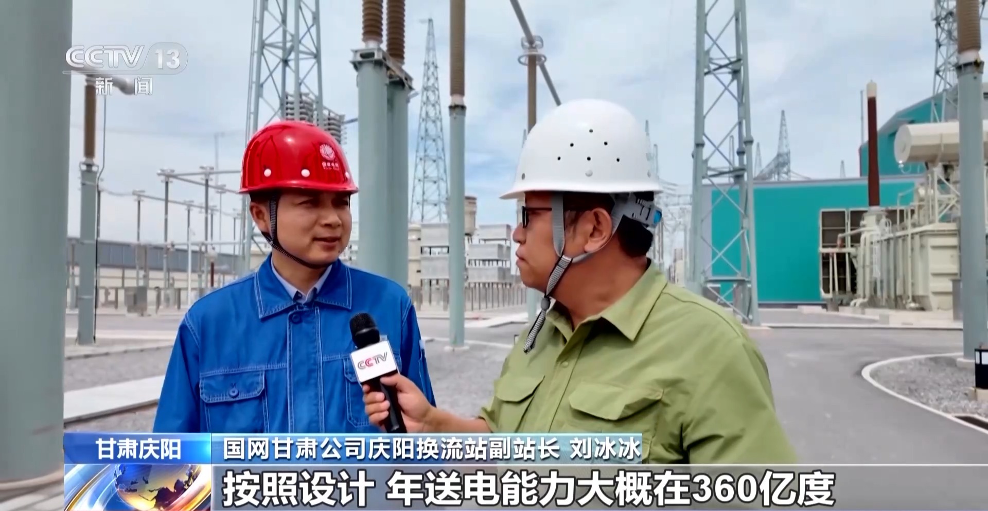 *國網甘肅公司慶陽換流站副站長 劉冰冰:*按照設計,年送電能力大概在360億度,可以滿足1000萬户家庭一年的生活用電,清潔能源佔比大概在50%以上。