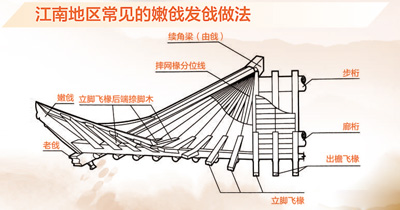 由於我國南北地域的不同,產生飛檐營造做法的差異,逐漸形成北方官式樣式以及江浙、閩粵等地的特色飛檐。