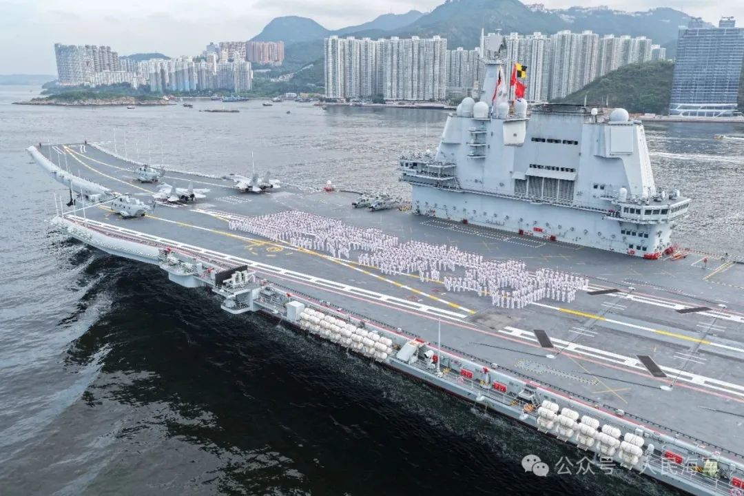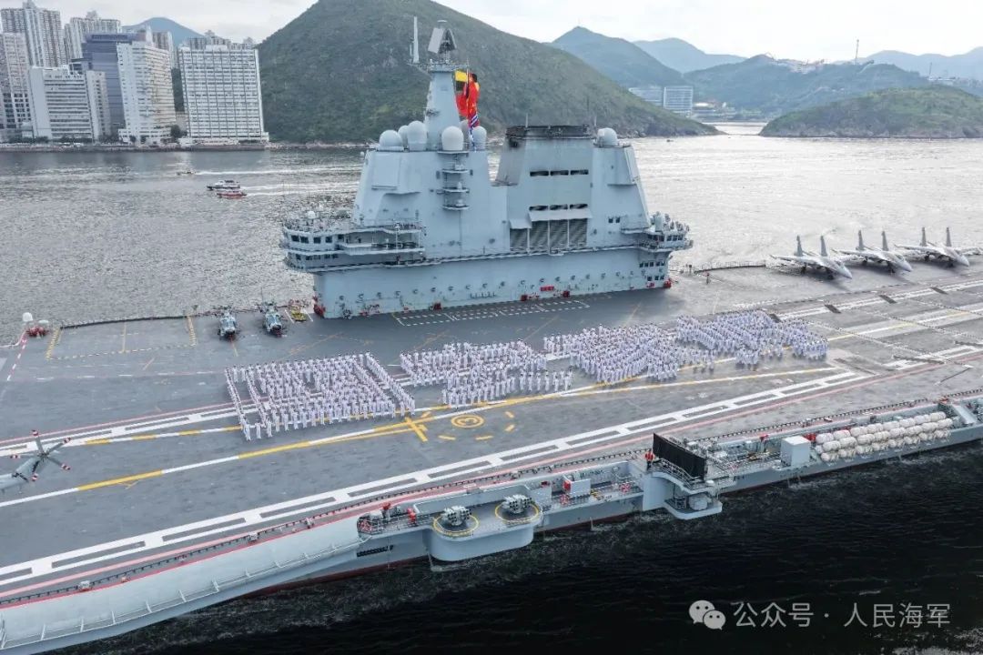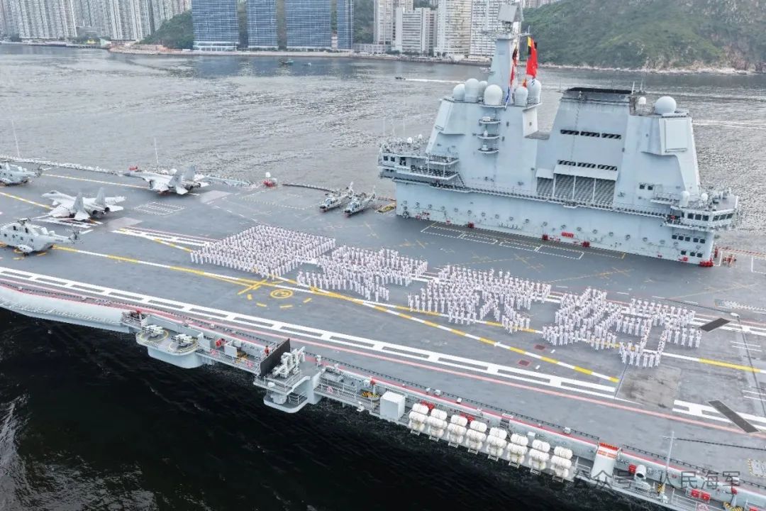 7月3日,在香港迴歸祖國28週年之際,由海軍航空母艦山東艦,導彈驅逐艦延安艦、湛江艦及導彈護衞艦運城艦組成的航母編隊,攜多型艦載戰鬥機、直升機和陸戰隊員,於3日上午抵達香港特別行政區,開啓為期5天的訪問活動。香港特別行政區政府在昂船洲軍營為艦艇編隊訪港舉行隆重歡迎儀式。