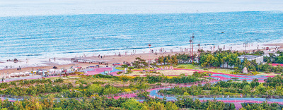 山東日照市東港區的陽光海岸綠道生態如畫。