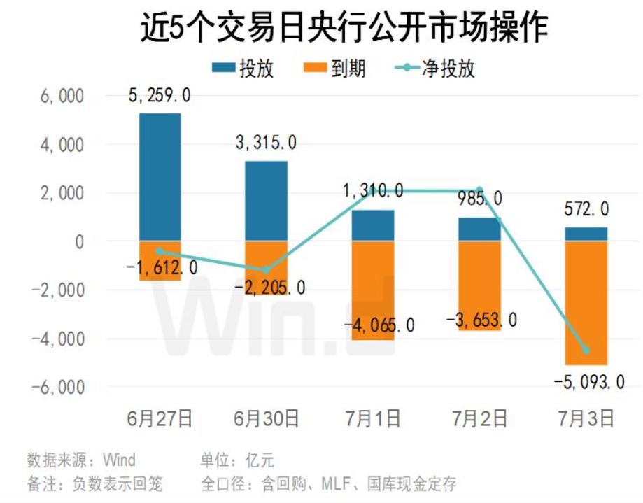 中信證券首席經濟學家明明指出,6月MLF以及買斷式逆回購均維持了資金淨供給,在多重價位中標機制下,不排除MLF中標利率下行的可能性。預計常規流動性工具將維持淨投放。