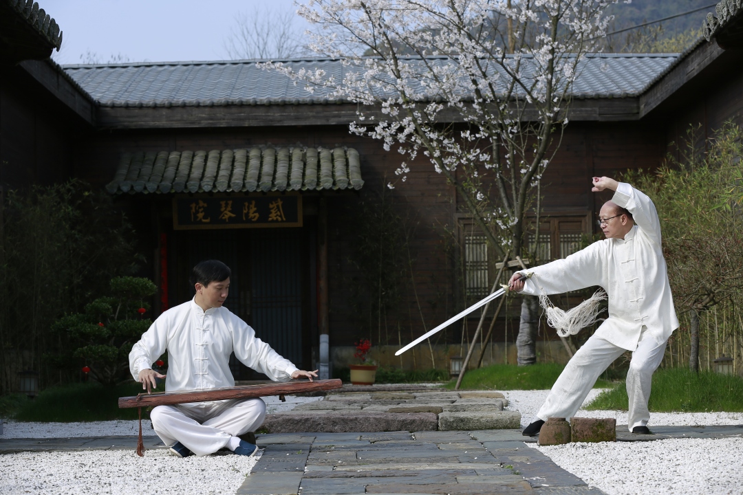 區君虹父子舞劍撫琴,展現“劍膽琴心”風範