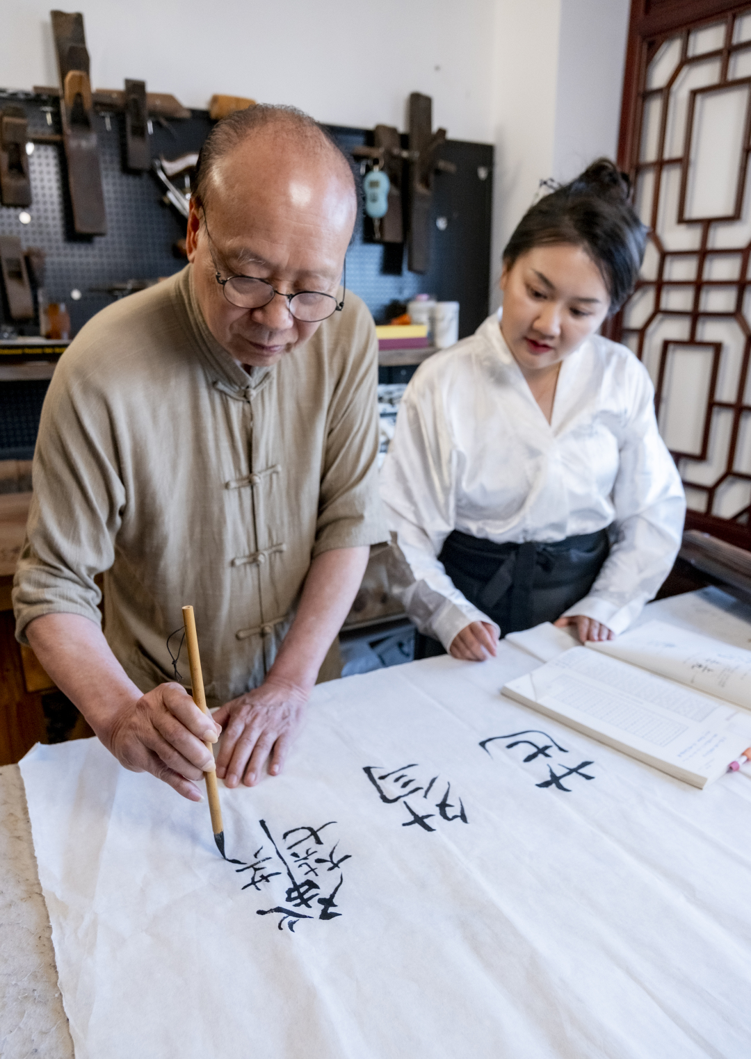 如今,區師傅將更多精力投入到古琴藝術傳承推廣中。4月,區師傅與兒子區宏山聯手廣東第二師範學院共建“嶺南古琴實踐教學基地”,讓學生有機會向名家學琴。讓區師傅驚喜的是,“宏山學的是商務英語,沒想到這在古琴藝術交流上發揮作用。北京冬奧會前夕,有外國主播來到永慶坊體驗嶺南文化,宏山現場就用流利的英語來了一段即興教學。”