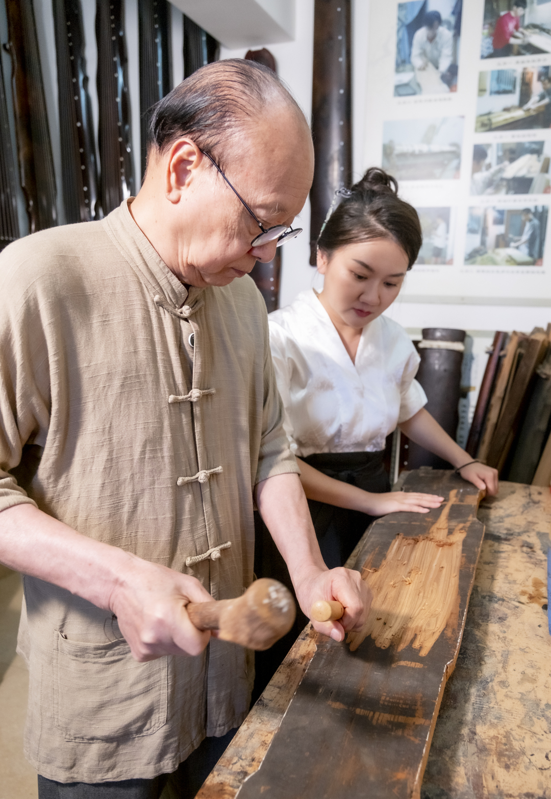 對於小麥而言,這次非遺學藝既是文化交流,更是一次可貴的內心修煉。坐在榕樹頭率性撫琴,在琴室裏伴着木香斫琴,在雨聲環繞中分享古琴心法……雖然相差近五十歲,小麥卻因一把古琴,與區師傅成為忘年交。