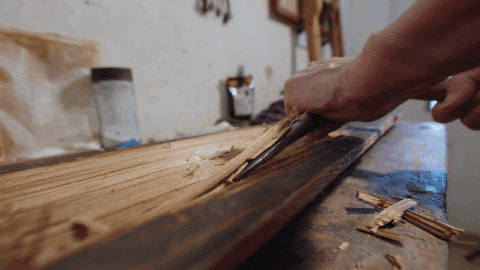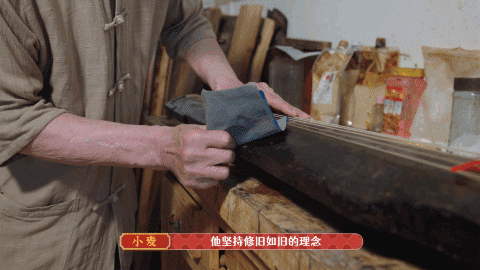為了展示古琴煥新的過程,區老師帶領小麥走進修琴房,一股經過歲月浸潤的木頭香味撲面而來。地面上堆疊着一塊塊木板,工作台上放着一張正在修復的古琴,周圍散落着各式各樣的修琴工具,“楊老師是古琴收藏大家,他收回來的‘爛古琴’都由我們來修。我會使用熟悉的中醫知識,將‘望聞問切’技巧融會到修復古琴技藝當中,掌握如何處理琴腔結構,更好地表現低音,或讓高音更清亮。”在區師傅眼中,傳世古琴是會發聲的文物,修復更需修舊如舊。