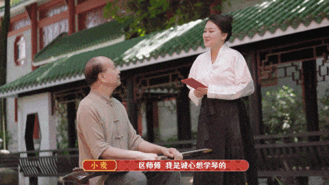 彈奏古琴可分為技法和心法,心法稱得上是“古琴的靈魂”。在傳授心法“秘訣”時,區師傅坐在潺潺流水旁,奏響了嶺南派古琴名曲《碧澗流泉》,帶領小麥細品琴曲結構、琴音效果,“琴曲開頭,中指注一弦徽外吟,然後勾二絃兩個散聲同響,宛如敲響深山禪鍾,音效淡遠,塑造起清逸古樸的氛圍,與王維詩句‘古木無人徑,深山何處鐘’的意境相近;琴曲第二段開始進入主旋律,寫實地描繪了流水狀態;結尾處的音色、譜曲趨於平緩,宛若在感嘆往事如煙。”
