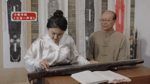 區君虹師傅向小麥傳授了彈奏技法後,挑選了《滄海一聲笑》這首經典入門曲,讓小麥在演奏中加深對指法、心法的感悟,“這首曲子運用了中國傳統的五聲音階,曲風豪邁灑脱。你彈奏時,不僅要彈響琴音,還要細緻處理好每個音的強弱、音色、節奏,彈出內在情感與神韻。”一番練習下,小麥發現,古琴入門並不難,但要修煉到一定水平,離不開長年累月的積澱,這樣才能透過琴聲表達個人的美學境界、精神體悟。