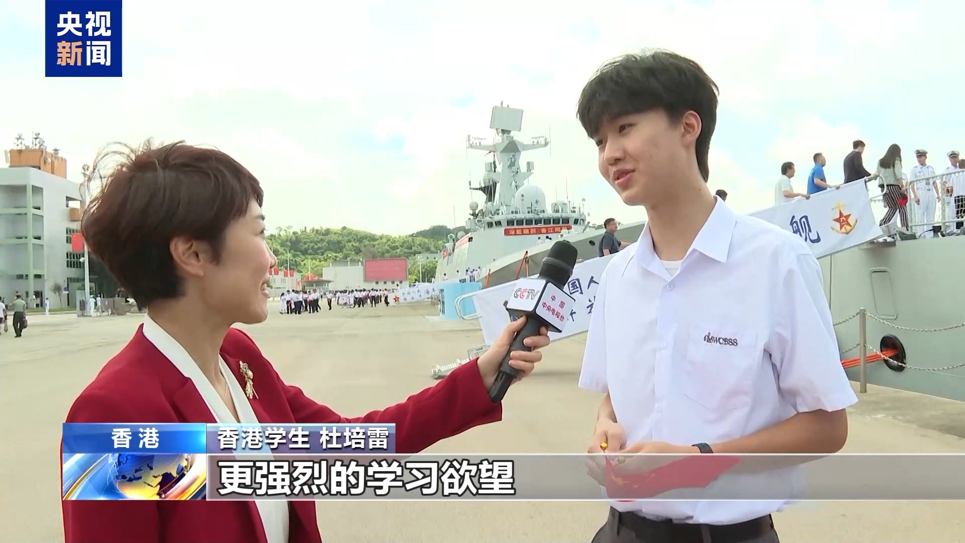 *香港市民 張先生:*很高興看到祖國的軍事裝備越來越強大。從去年珠海航展看到新戰機,到現在山東艦,以前還看過遼寧艦,當然還希望福建艦來。我希望祖國越來越強大。