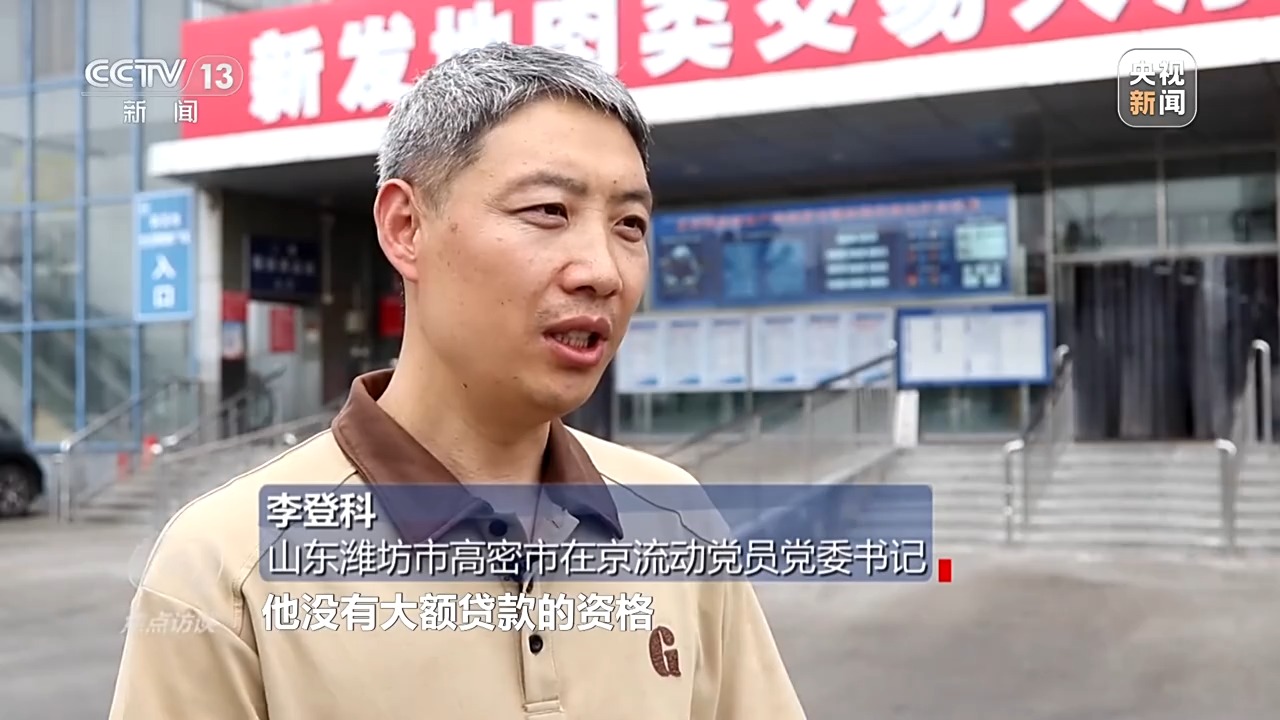 *山東濰坊市高密市在京流動黨員黨委書記 李登科:*資金困難比較突出,因為我們都是外地户籍,不屬於京籍,他沒有大額貸款的資格,所以我們跟老家的組織部、老家的黨委進行溝通,協商了很多金融機構。