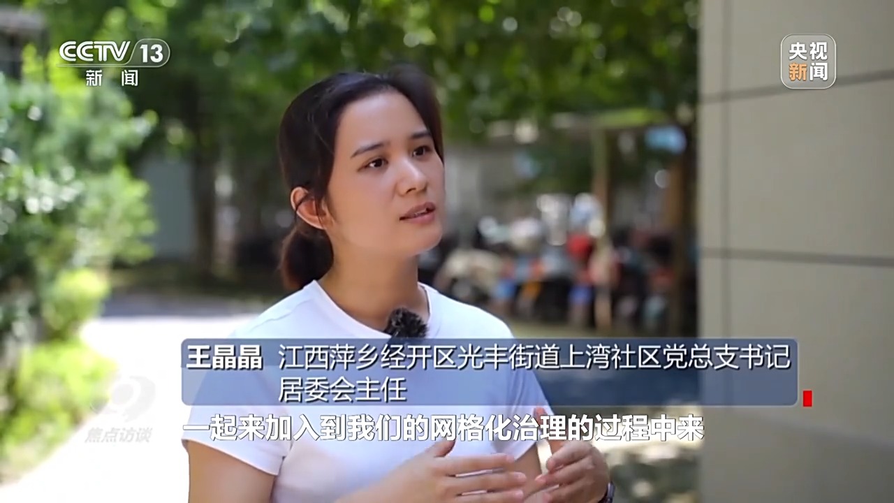 *江西萍鄉經開區光豐街道上灣社區黨總支書記、居委會主任 王晶晶:*一個支部有問題,共建的支部站出來,我們不是在單打獨鬥,一起加入網格化治理的過程中來,然後推動社會基層治理,推動小區更和諧發展。