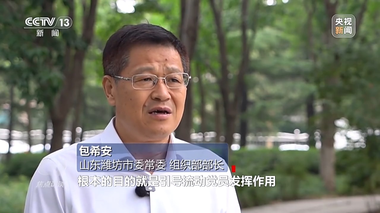 *山東濰坊市委常委、組織部部長 包希安:*流動黨員是黨員隊伍的重要組成部分,也是建設地方經濟社會發展的重要先鋒力量,抓流動黨員的教育管理,根本的目的是引導流動黨員發揮作用。深入到黨員和羣眾的生產生活中,在生產生活當中真正發現問題、解決問題,最終形成多贏的局面。老百姓滿意了,黨員也成為羣眾的貼心人,黨員的先鋒模範作用也就發揮得更充分,我們黨的凝聚力戰鬥力也就會進一步增強。