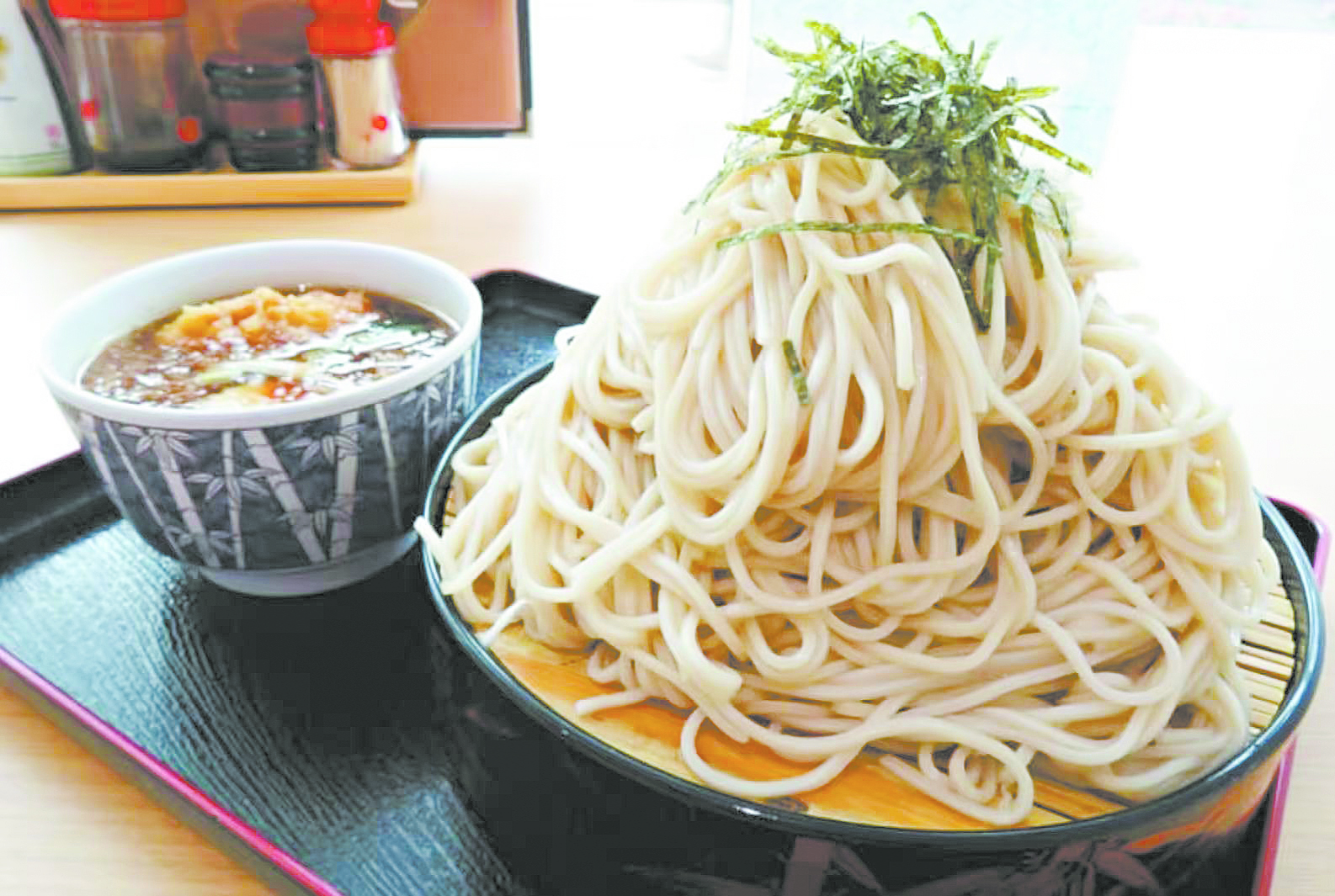 大多數外來食客的目標並非可口的套餐或蓋飯,而是分量驚人的特製蕎麥麪。食堂的蕎麥麪還有涼麪和熱面,只有特製蕎麥麪有多種規格:特、中特以及大特,價格分別是650日元、700日元和800日元。菜單上特別展示了不同規格蕎麥麪的照片,其中“大特”旁明確註明:“分量滿滿,約1公斤!”即便空着肚子來,看到菜單照片和其他桌上小山一樣的麪條,也要慎重考慮一下自己的“肚量”。據説食堂之前只賣特和大特兩種規格,後來為了滿足普通人的需求,才推出介於兩者之間的中特。