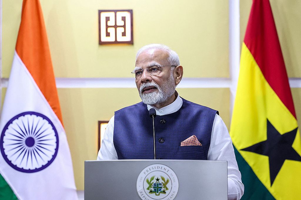 【環球時報特約記者 白元】據《印度斯坦時報》3日報道,正在加納訪問的印度總理莫迪2日被加納政府授予加納最高勳章“加納之星”,加印還同時簽署了4份諒解備忘錄,涉及文化交流、傳統醫藥培訓和研發等領域。據《鑄幣報》報道,加納是莫迪7月2日開啓的五國之行第一站,莫迪也是三十年來首位訪問加納的印度總理。