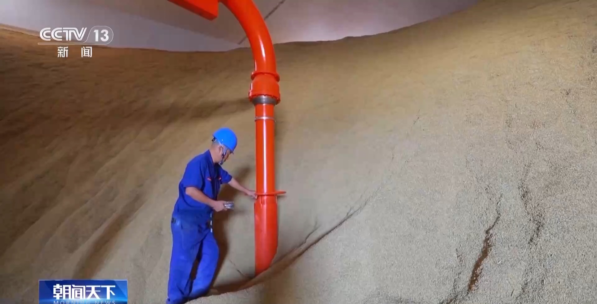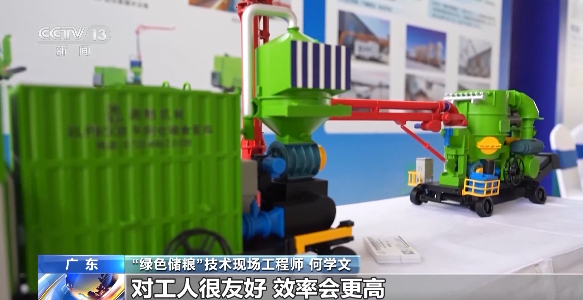 “綠色儲糧”技術現場工程師 何學文:把糧食從車上或倉庫裏吸出來,它是負壓的環境,工作環境會很好,對工人很友好,效率會更高,又可以保證糧食的完整性。