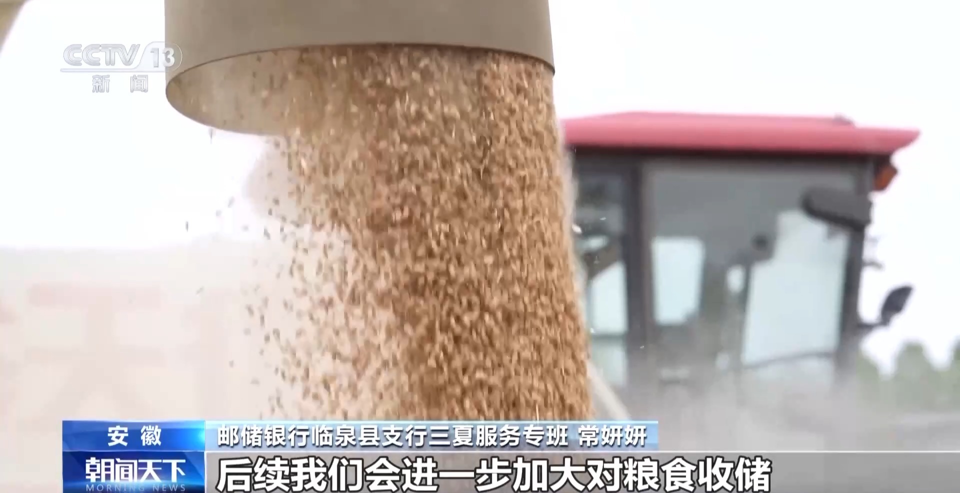 郵儲銀行臨泉縣支行三夏服務專班 常妍妍:我們共向糧食收購企業投放貸款2.3億元,助力300餘户糧食相關企業發展。後續我們會進一步加大對糧食收儲、倉儲優化等環節的金融支持。