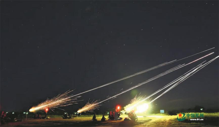 西部戰區陸軍某旅組織官兵進行夜間實彈射擊。王 坤攝