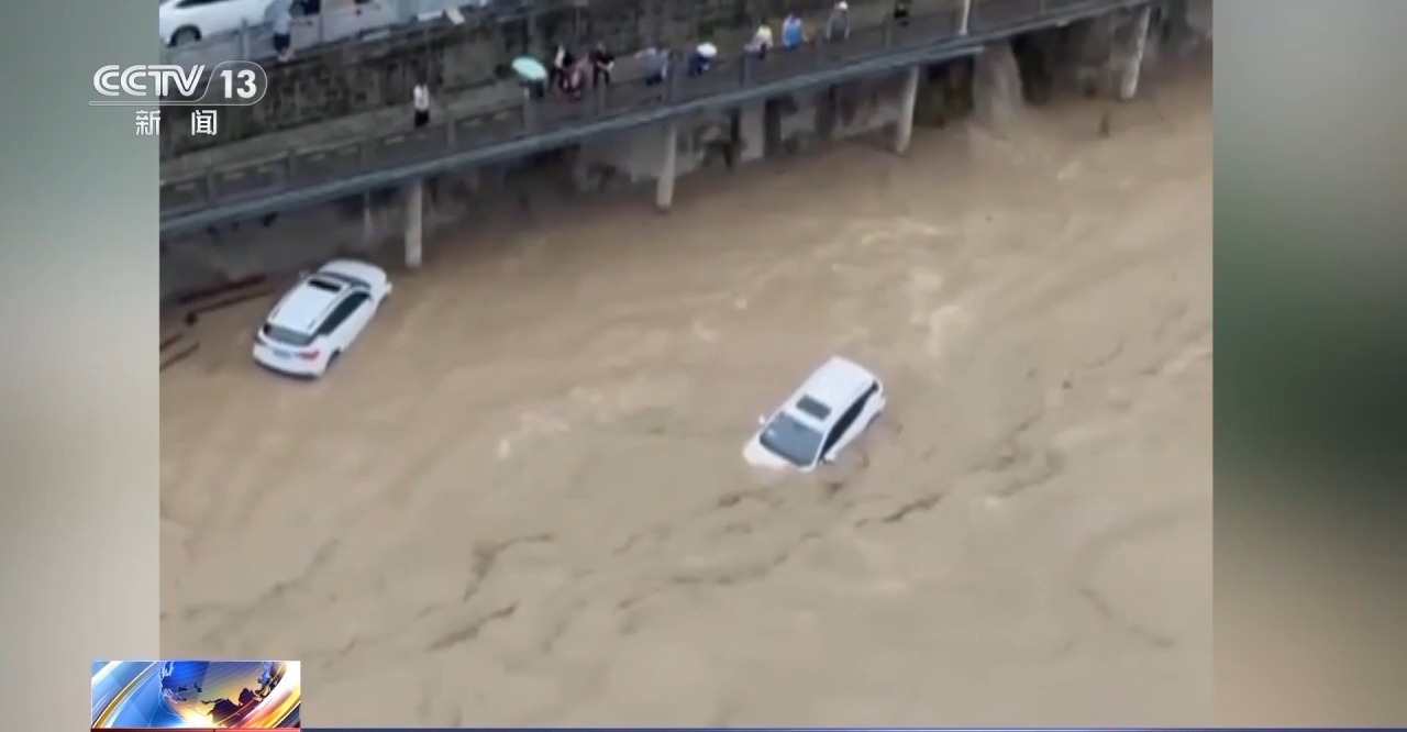 在城區一處低窪地帶,湍急的河水將一輛停在河邊的汽車捲入水中。為應對雨情,康縣16個鄉鎮緊急轉移189户464人。昨天下午開始,康縣雨勢減弱,河道水位下降,當地組織環衞人員和社區工作人員、志願者清理積水、淤泥,保障羣眾的正常生產生活。