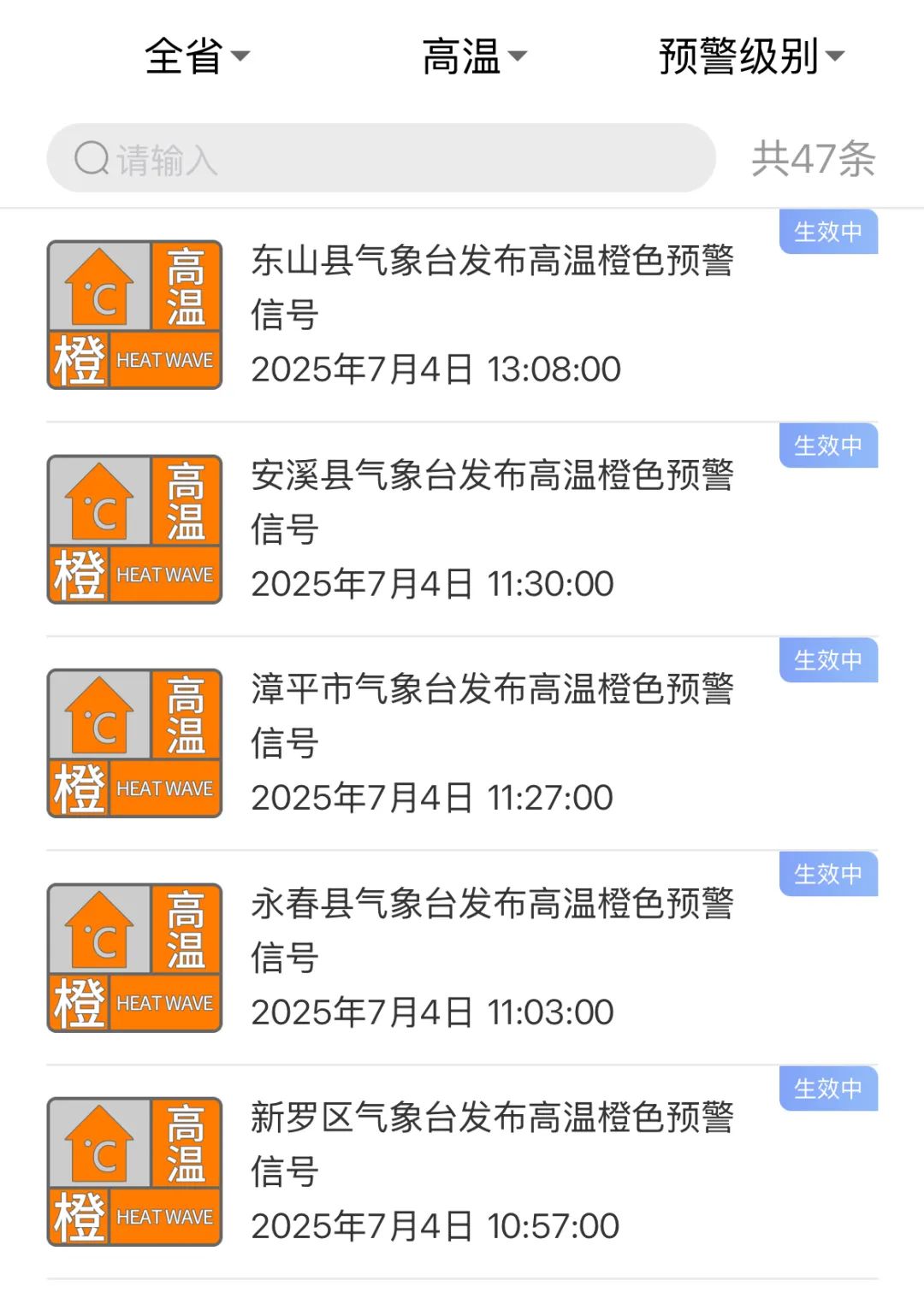 受副熱帶高壓控制,今天福建省大部分縣市城區最高氣温可達35℃以上,其中南平大部、三明大部、龍巖大部、漳州中北部、泉州西南部、廈門北部城區可達36~38℃。