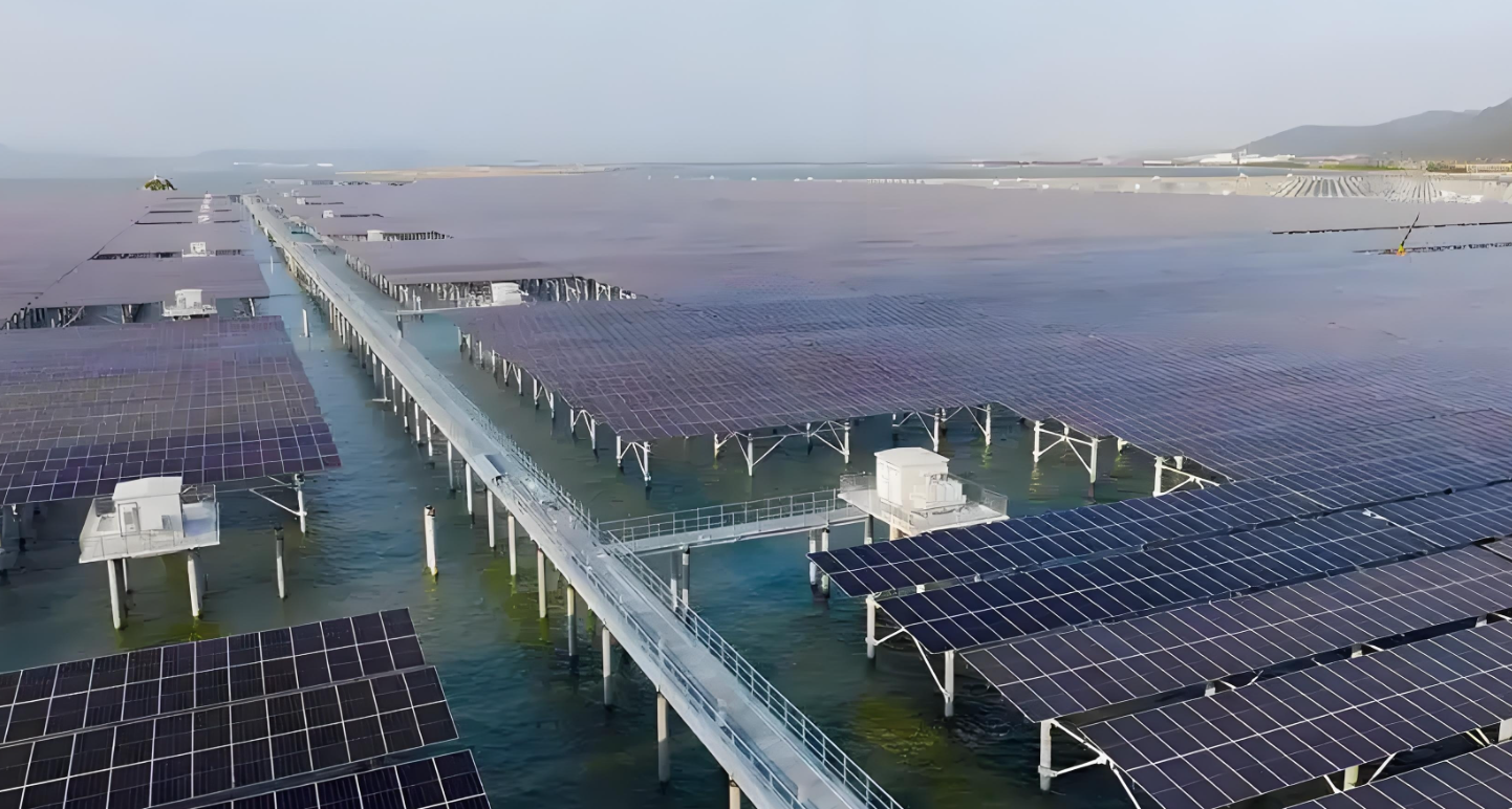 在技術創新方面,該項目亮點突出。其創新採用漂浮式光伏結構,光伏板具備隨潮汐同步升降的獨特設計。這一設計大幅縮短了板體與水面的距離,僅為傳統樁基式結構的約1/10。藉助海水的天然散熱優勢,通過冷卻效應可使發電效率提高5%—8%,有效提升了能源利用效率。