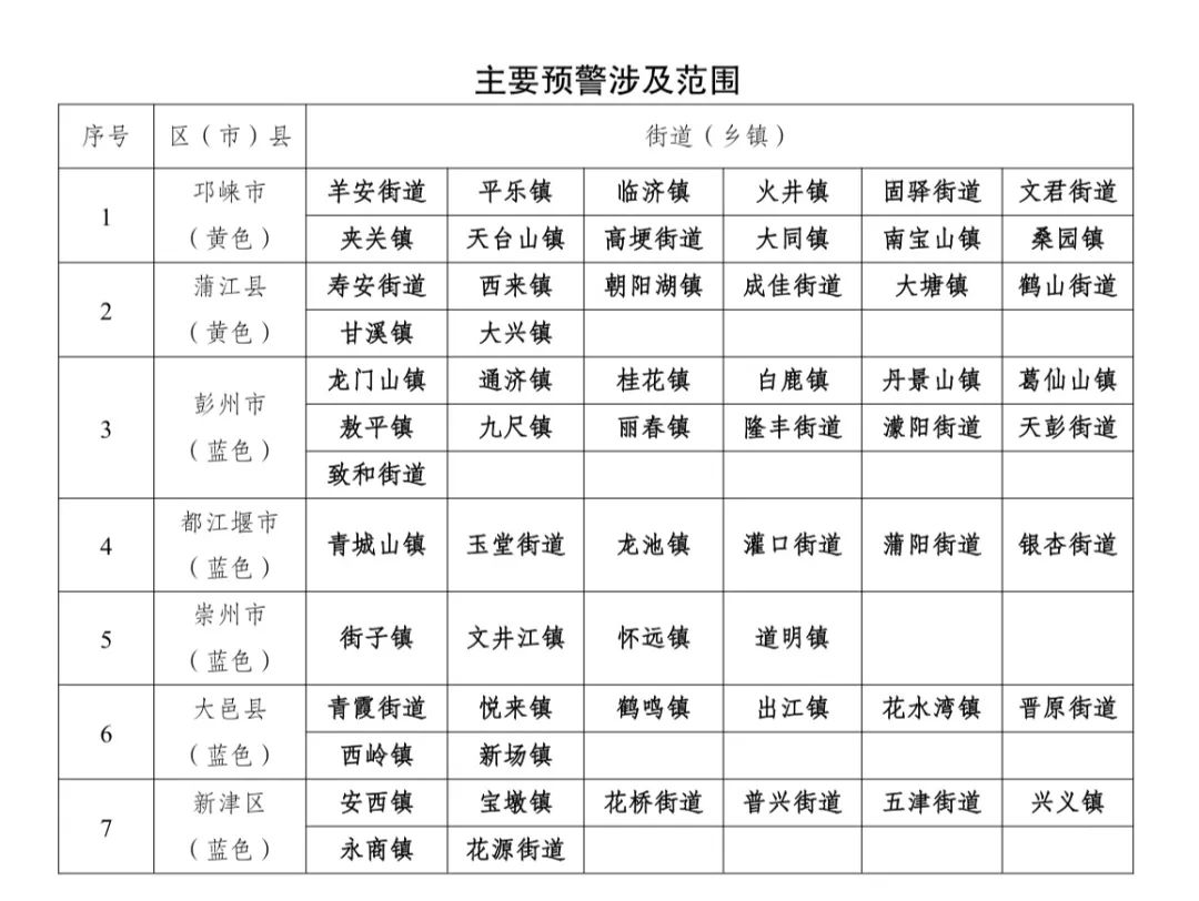 成都多個區(市)縣發佈重要預警!
