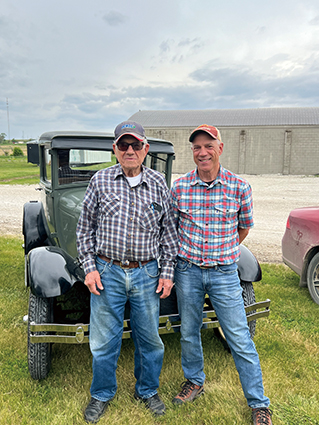 5月24日,梅爾文·倫茲(左)和兒子蘭迪在他的老爺車前合影