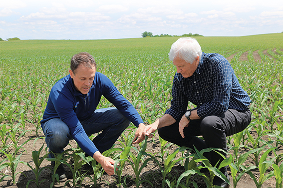 5月23日,瑞克·金伯利(右)和格蘭特·金伯利在查看種植的玉米